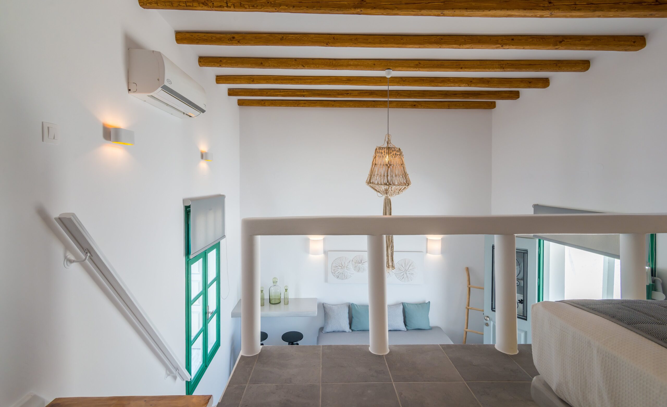 Babounis Suite accommodates up to two guests and features a beautifully designed loft bedroom, creating a cozy and romantic setting. The space also includes a comfortable living area, a fully equipped kitchen, and a private terrace where guests can unwind, enjoy their morning coffee, or relax under the warm Greek sun.